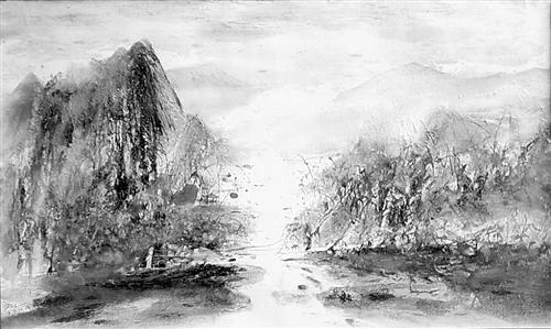 不过,话又说回来,王民生独创的“聚彩画”,乍一看有油画的质感,却又不同于油画的色彩斑斓与浓烈;而且,在技法上还令人多少有点“含拙”的感觉;线条上的突隐突现,展示的是一种似乎流水不畅的阻滞——这是不是王民生在创作过程中从硬质走向流质的体验,他本人没说,观赏者当然也就可以据此见仁见智了。