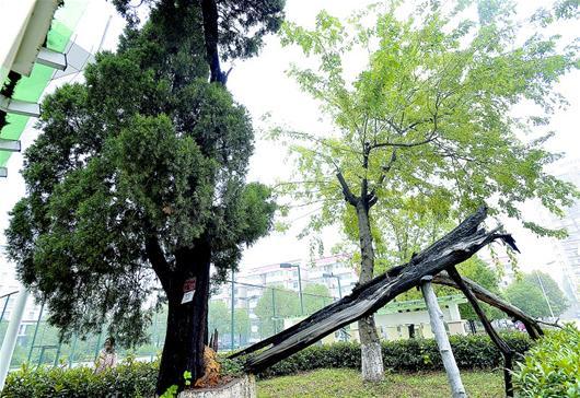 很难想象,该棵郁郁葱葱的古树,曾一度“生命垂危”。据武汉园林科研所树木生态研究室高级工程师史红文介绍,2006年前后,该树经历两场雷击,发生自燃,树心部分甚至已经炭化,树木主干内空,只剩下约1/3。科研人员将其主干空洞处和树根底部用木炭、珍珠岩等料填充,避免其继续腐烂,再定期施肥松土。同时,在树木9米高处,安装了避雷针。