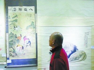 千姿百态、倜傥洒脱的马,跃然纸上。它们或奔腾跳跃,或回首长嘶,或腾空而起,或四蹄生烟。更加令人惊叹的是,画作上的一景一物,全都是由动物的羽毛当做画笔绘制的。这幅历史久远的“八骏图”,是由明代画家冯宗画成的。从昨天开始,它在厦门古玩城亮相。 (记者 王元晖)