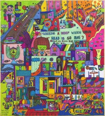 12月6日,傅蕾蕾在北京798艺·凯旋空间举办了她的首次个展《傅蕾蕾的妙想世界》,作品充满斑斓的色彩,满目的卡通图案,俨然是一个童话世界。但她此前接受媒体采访时表示,虽然她的作品色彩斑斓,看起来很开心的样子,但她画画的那一刻内心是沉重而黯淡的。不过,画完之后,心情就会好起来,她把画画当成一种疗伤的手段。