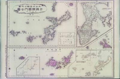 网站所列资料之一:1895年日本出版的《冲绳县管内全图》。此图对冲绳县所属岛屿和地理范围作了明确记载,可清晰看出久米岛为琉球群岛西南方界,钓鱼岛及其附属岛屿不在冲绳县管内。