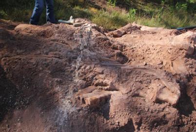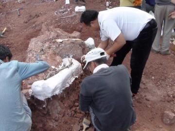 去年10月30日至12月10日,会理县文物管理所与中国科学院古脊椎动物和古人类研究所、自贡恐龙博物馆,联合在会理县境内进行了为期1个多月的古脊椎动物化石调查勘探工作。勘察中,发现了一批古脊椎动物化石标本,其中在南阁乡某地,清理出了一具较为完整的恐龙化石,完整率约45%。经专家初步研究确认,这些化石为植食性蜥脚类恐龙化石,属早侏罗纪的晚期和中侏罗纪早期。