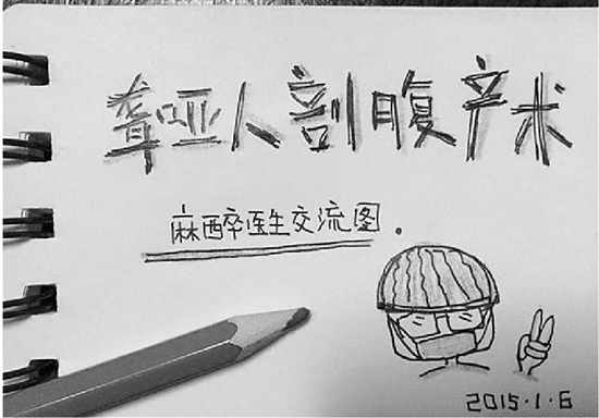 下午两点左右,姚翔在为那位孕妇进行麻醉前,把漫画给那位孕妇看了,“她脸上的紧张感明显就少多了,轻松多了。”