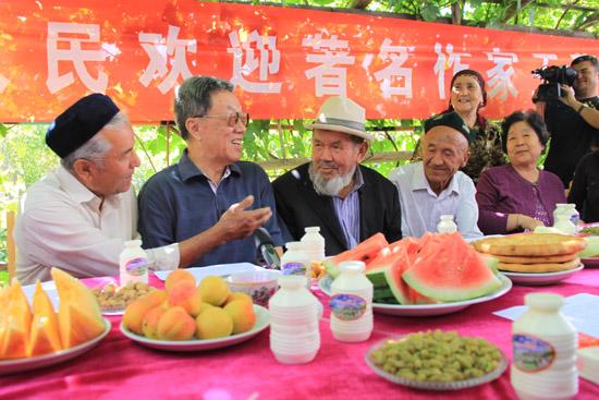 这一天,这座占地5亩的“王蒙书屋”庭院里歌声笑声不断,多年前与王蒙共同生活劳动过的百余位维吾尔族农民专门赶来,嘴里喊着“大队长”,上前拥抱甚至抱头痛哭。巴彦岱的乡亲们说,王蒙是我们的老朋友,这里永远是他的家。