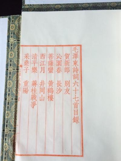 这套《毛泽东诗词六十七首》,由雕版印刷传承人陈美琪亲自操刀,历经两年,雕刻出36块版面,印刷而成,具有极强的收藏价值。