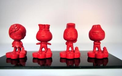 扬州漆器做成的“风小丫”、“麦小乖”、“糕小乖”、“包小乖”。