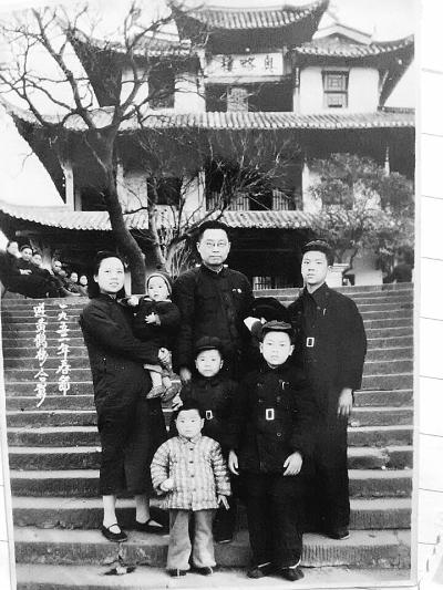 4月3日,77岁的市民钟晓佳,给本报发来一张63年前在奥略楼前拍摄的全家福。这张老照片上,题有“奥略楼”三字的牌匾清晰可见,而在相片左侧,照相馆印上了“游黄鹤楼合影”几个字。