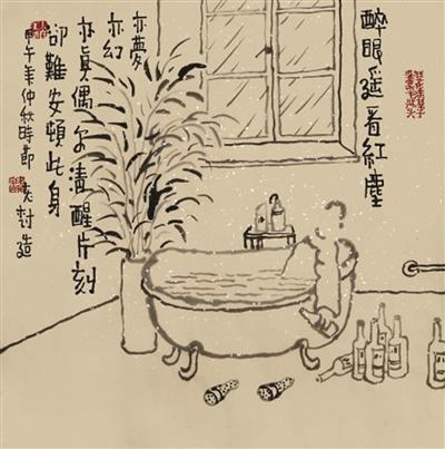教授创作“古体画配打油诗”走红 调侃现代生活