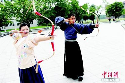 校园“神雕侠侣”走红:穿汉服练习射箭 抚琴品茗