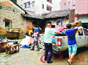 图为有关部门在清理现场物品。白云区文广新局相关负责人表示,目前在白云区文物登记单位的名单中,并没有查到白山社区的罗屋祠堂。只有达到文物登记单位或者历史建筑的级别,才可向政府申请维修经费,但必须提供合理的维修方案。该负责人坦言,对于这类村祠堂,一般都是祠堂的宗亲所有,如果既不是文物单位,也不是历史建筑的话,需要这些宗亲一起出资来修缮。