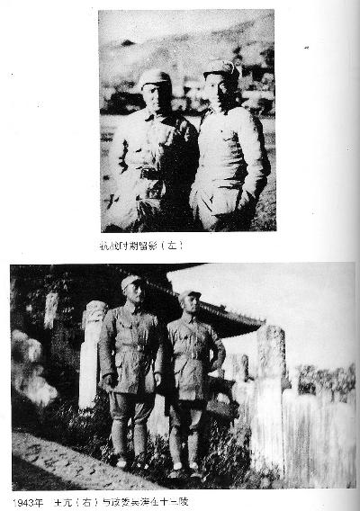 1943年,王亢(右)与政委吴涛在十三陵