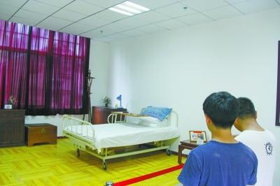 学生正在参观钱老生前睡过的床。