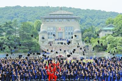 蓝天、绿树、琉璃瓦、学士帽,一张张笑脸,一个个造型,构成了这个夏天最漂亮的风景。6月13日,是武汉大学本科生和研究生集体拍毕业照的日子,所有毕业生以学院为单位拍集体照,三个集中拍照点分别设在信息学部、文理学部和医学部。