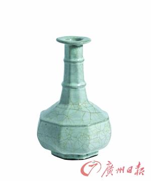 南宋官窑青釉八方弦纹盘口瓶