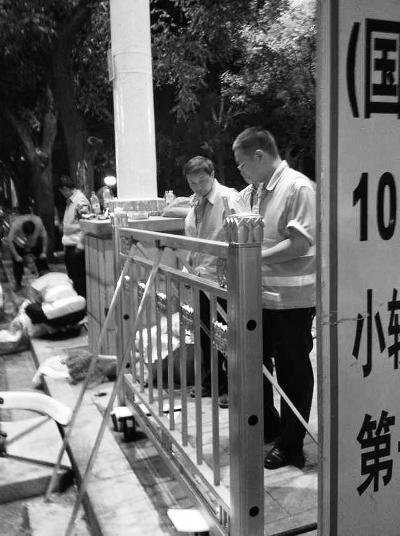 昨晚,工作人员开始更换长安街北侧的护栏 供图/市市政市容委