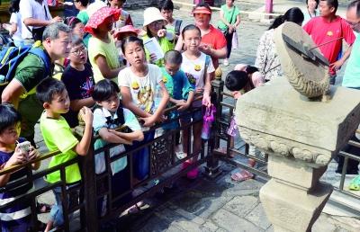 在故宫暑期课堂上,家长和孩子们一起参观日晷 摄/法制晚报记者 郭谦