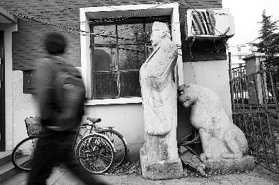 细心的路人可能会注意到,在海淀区玉渊潭南路一幢二层楼前,摆放着一尊石人,身后还有一尊石虎。2012年1月9日,本报曾以《元明石象生 居委会门前站岗》为题,报道过这一独特景象。