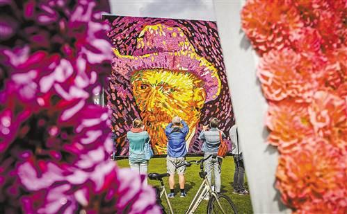 7月29日,在荷兰阿姆斯特丹,游客在一幅用鲜花拼出的梵高肖像画前拍照。当日是著名荷兰绘画家梵高逝世125周年纪念日。 新华社发