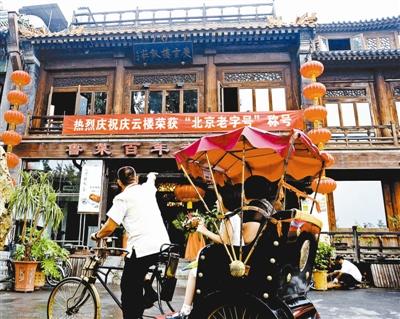 本报讯(记者 王薇)昨天,什刹海地区再添一家老字号。始创于清道光年间(1820年)、曾是京城第一家鲁菜饭庄的庆云楼,被北京老字号协会正式授予“北京老字号”称号。和什刹海地区鳞次栉比的现代酒吧相比,有着200年历史、全楼大部分采用纯实木榫卯结构的庆云楼尽显古朴的沧桑之感,成为该地区为数不多原址恢复的老字号。