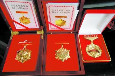 石娟荣获得的抗战胜利60周年纪念章(中)。