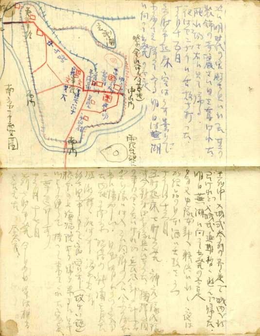 之前和父亲的对话中,我问父亲:“你参加南京大屠杀了吧?”“我不知道屠杀的事。”父亲坚持道。我不相信,好几次问他:“你没有骗人吧?”于是,我马上翻到日记的那一页,把1937年12月13日前后的日记都看了一下。确实,12月14日父亲陪伴坂井旅团长去南京城内巡视,并且还画了地图详细地记录了下来。但没有记录显示曾接到在南京城内扫荡的任务....。.当时我内心的真实感受是,终于松了一口气。
