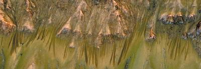 自2006年以来,美国火星勘测轨道飞行器多次在火星山丘斜坡上发现手指状阴影条纹。美国航天局将其称为“季节性斜坡纹线”,并认为这种奇特的季节性地貌由咸水流造成,但一直没有找到直接证据。