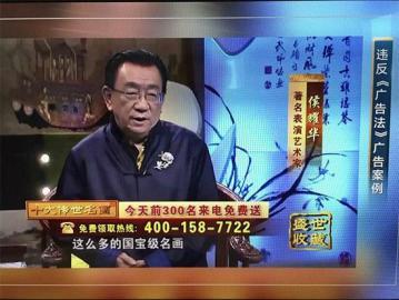 利用知名艺人侯耀华等人员进行涉嫌虚假宣传,提升自身产品影响力。经工商部门调查核实,所谓的“传世名画”只是浙江某工艺品厂生产的丝绸制印刷品。其行为误导消费者并进行虚假宣传。侯耀华宣传说,只收3800元成本费,其实印刷费成本只有800元。据工商局有关方面调查,因候耀华的虚假宣传,已卖出600万的所谓名画。
