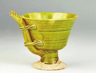 这次展出的展品包括盏、杯、壶、盏托、茶碾、研磨器等种类,有唐代的三彩吸管杯(右图)、白釉葫芦形执壶、白釉洒蓝彩盏,宋代的珍珠地划花高足杯、黑釉荷叶口碗等。郑州大象陶瓷博物馆馆长何飞表示,这次展览是公益展览,展期持续至10月底,希望这个展览能让大家体会到中国茶文化的博大精深。