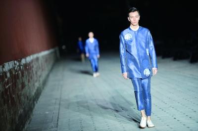图为昨晚,模特在故宫红墙下进行了一场宫廷风时装走秀