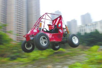 11月3日,在校园的一块空草地上,秦小艳把赛车开得飞快,在过一个坡道,赛车高高飞起,这是她最兴奋的时刻。