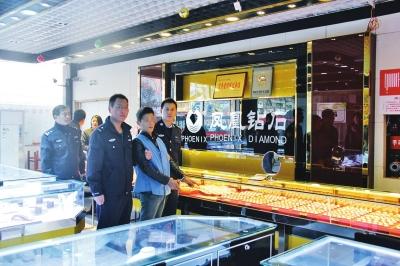 “一个男的来到柜台前,让我把最粗的那个金链子给他看。”据珠宝店柜台的女营业员小李回忆,当时这名男子身穿酒红色皮衣,长发,戴了一个茶色眼镜,年纪20多岁。
