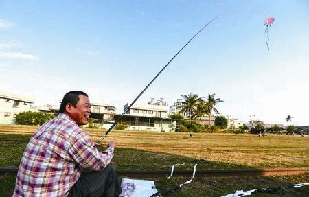 据台湾《联合报》1月3日报道钓竿除了钓鱼外,还可以用来放风筝!高雄市民黄文瑞日前背着钓竿,把风筝系在钓竿上,只要高高举起钓竿,风筝就迎风飞起,成了悠游天上的“鱼”。不少民众看到“钓风筝”都觉得新奇,直夸点子妙!“妈,快来看,这个阿伯在‘钓风筝’呢!”民众看到钓风筝的奇景纷纷靠了过来,觉得真是奇思妙想。黄文瑞说,因为钓竿没钓过大尾鱼,线也没放尽过,加上很喜欢放风筝,干脆就用钓竿放风筝。放啊放,线放尽了,远远的风筝成了米粒大小。
