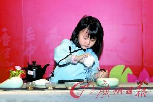 小朋友学习茶艺,在佳节为长辈奉上香茶。广州日报记者骆昌威摄