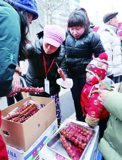 ▲在陶然亭庙会上,很多游客抓紧最后的机会购买糖葫芦,一品年味