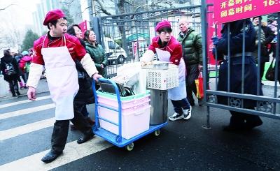 在卖肉串的摊位,记者看到了8个大箱子,每个里面都是煨制好的肉串,伙计称,这些货是按经验备的。“能卖多少也不好说,但多点比少了强。”