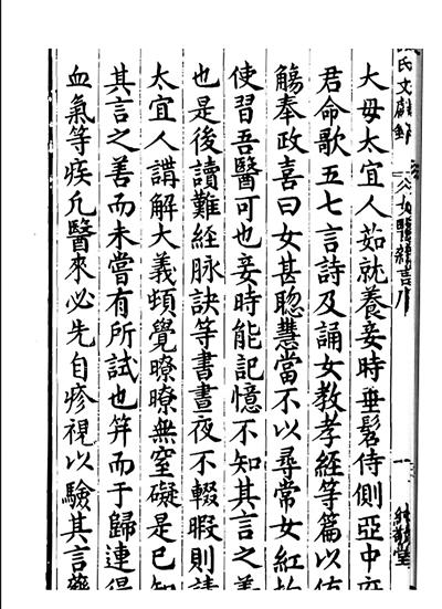 基于丰富的实践经验和扎实的医学理论知识,在谈允贤五十岁时,将祖母传授的医术和自己多年的临床经验进行了总结,在明正德六年(1511年),经其子杨濂抄写付梓,终有《女医杂言》这本凝聚了其一生心血的著作。据有关资料介绍,该书早年被现代著名中医医史文献学家范行准先生收藏,后来捐给中国中医研究院图书馆。这部专著记载了31个病案,详述病情、病史,后列治法、处方,记载的患者均为女性,病证多为妇科病,包括月经不调、习惯性流产、血崩、不孕等。患者年龄最大的96岁,最小的6岁。