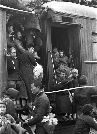 民国乡民挤火车