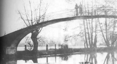 1936年冬,钱锺书杨绛夫妇在牛津大学公园的桥上(右图)和桥下。 (资料图片)