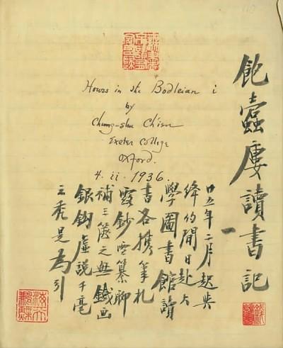 牛津大学的波德林图书馆(Bodleian Library) 是钱先生外文笔记开始的地方。他将这里称作“饱蠹楼”,意为书虫大快朵颐之地。在“饱蠹楼读书记”第一册上,钱先生写道:“廿五年(一九三六年)二月起,与绛约间日赴大学图书馆读书,各携笔札,露钞雪纂、聊补三箧之无,铁画银钩,虚说千毫之秃,是为引。”此后60多年间,不畏昼夜寒暑,勤于抄纂,仅外文笔记就达211册之多,他为自己建起了一座个性十足的图书馆。