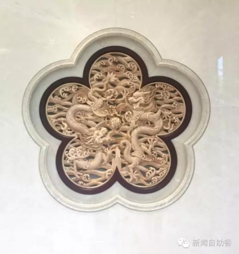 两件作品均以梅花造型呈现,圆润而优雅,寓意吉祥如意。精美绝伦的东阳木雕工艺,古色古香的文化气息,置身于西湖国宾馆之中,有一种中国文人湖边雅聚的悠然之感,让国际友人也实实在在地体会了一把中国式的雅致生活。
