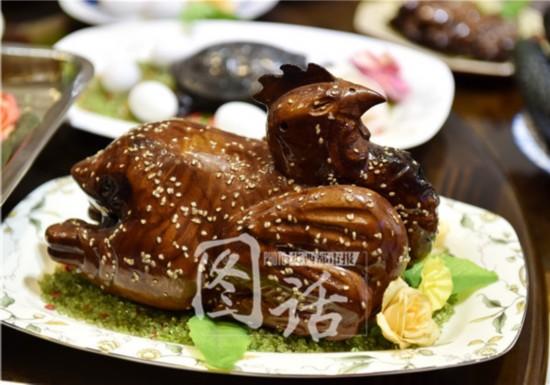 清蒸鱼、烤乳猪、卤鸡爪、红烧肉、黄瓜、花生、藕……今(21)日,一桌造价20万元的“满汉全席”亮相第四届中国(绵阳)科技城国际科技博览会。不过这桌美味的大餐是吃不动的,因为它们全部是由海百合茎化石、珊瑚玉化石、贝壳化石、海绵生物礁化石和金丝楠木等进行雕刻加工出来的。虽然吃不动,光看看还是能让人流口水。华西都市报客户端记者 张磊 摄影报道
