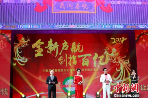 中新网1月12日电 日前,由天杞园中国民间春晚组委会打造的天杞园2017年中国民间春晚录制完成。此次中国民间春晚以传承民间文化、弘扬国粹精华、发掘原生态艺术为设计理念,致力于呈现一台阵容强大、跨越艺术与主流的新年祈福盛宴。