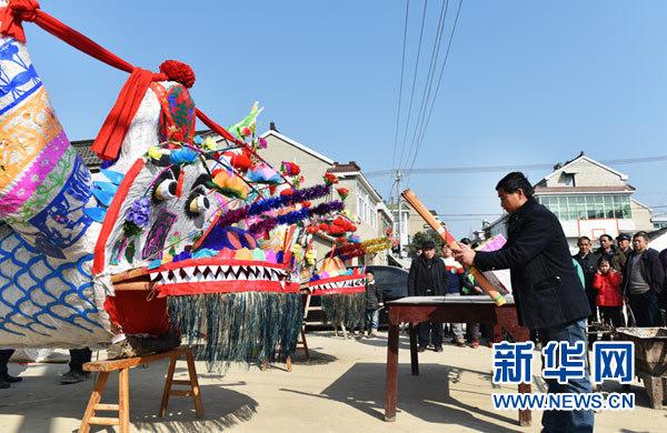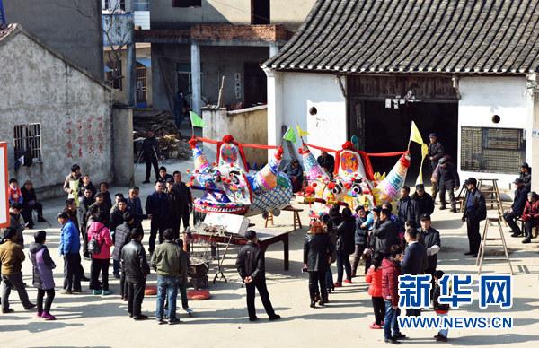 南京溧水村民为舞龙灯做准备 年俗延续300年