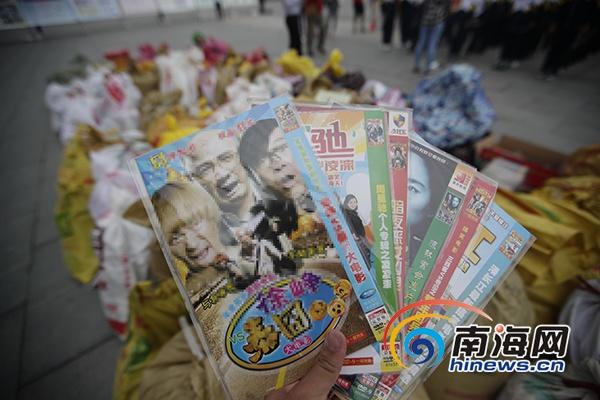 活动现场即将销毁的侵权盗版制品及非法出版物。南海网记者 刘洋 摄