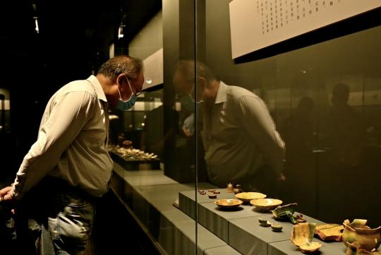 市民正在参观“唐三彩窑产品比较展”。(王笑楠 摄)