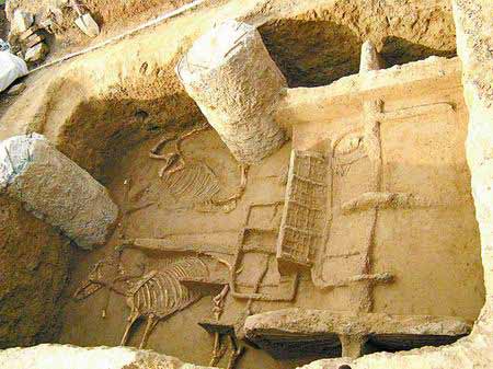 此次发掘出的车马坑中有两马两车,这种形制的车马坑在洛阳属首次发现