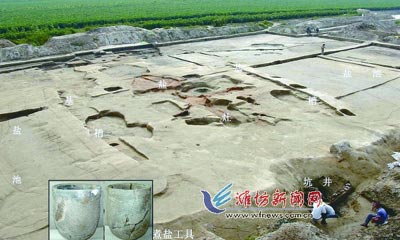 根据坑井出土的瓦片、淤泥及其它同时期遗留物,专家断定,这些坑井属于商代晚期至西周早期,“应该说这是我国目前发现的最早最古老的盐井。”燕生东介绍说,“这比文献记载,莱州湾一带最早的属于唐代的盐井提早了1600年,比其他地区发现的盐井早3000年。”商代盐井的发现,证明在3000多年前的商代,古人已经开始直接利用地下卤水制盐。