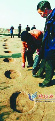 “这次发掘中,共发现这样的坑井3口。坑井口呈圆形者直径在8米以上,小的在5米左右,深2至3米。井内还发现了没有炭化的木棍,底部堆积着因长年积水而形成的灰黑色淤泥和灰绿色淤沙。”盐业问题专家、北京大学博士燕生东向记者介绍说,“坑井与遗址内因制盐而置的水沟、坑池相连,据此,我们认为这些坑井就是当时的卤水井。”据寿光市博物馆工作人员王德明介绍,古时地下卤水水位比现在要浅,有的地方还不足一米,这些坑井的用途就是当时人们从中取卤。