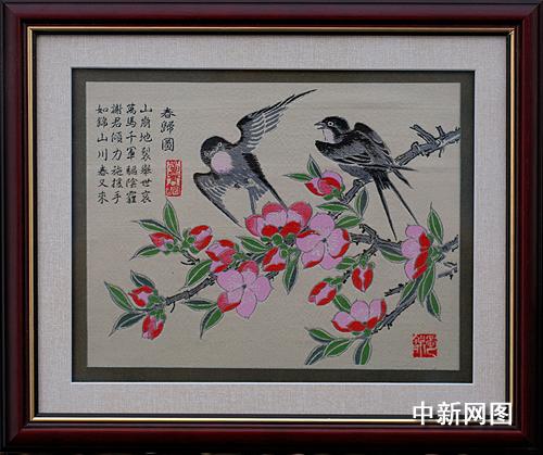 中新网成都2月26日电(记者杨杰)“山崩地裂举世哀,万马千军驱阴霾。谢君倾力施援手,如锦山川春又来”,画面上但见桃花绽放、春燕纷飞,充满生气。近日在蓉城织就的蜀锦《春归图》,以四川独有的传统工艺表达了四川人民对抗震救灾期间各界无边大爱的感恩之情。