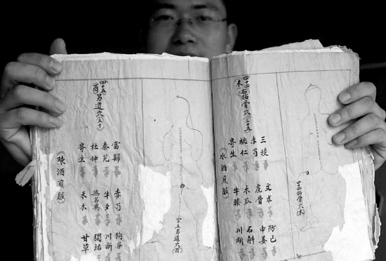 一页页粗糙、泛黄的纸张,一个个清秀方正的毛笔字,一张张轮廓清晰的人体简图……这是一本《骨伤科》,在华家传了好多代的医书。